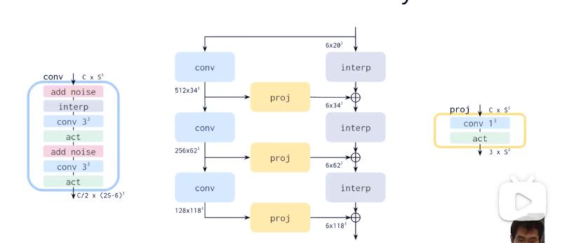 StyleGAN2本身是用来做图像合成的,不是用来做超分辨率的,作者利用其中的一部分,然后把低分辨率输入作为 StyleGaN2 Generator 的输入,经过层层的上采样,然后就形成了超分辨率的这么一个结果,其中最重要的就是左边这个要不停的加入 noise,来形成更精细的结构。而 discriminator 的架构就是比较经典的ResNet。