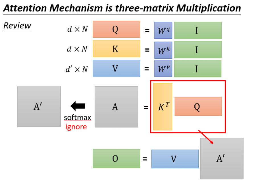 由于大矩阵计算占用大量资源,于是如何矩阵也是一种优化self-attention的方法。