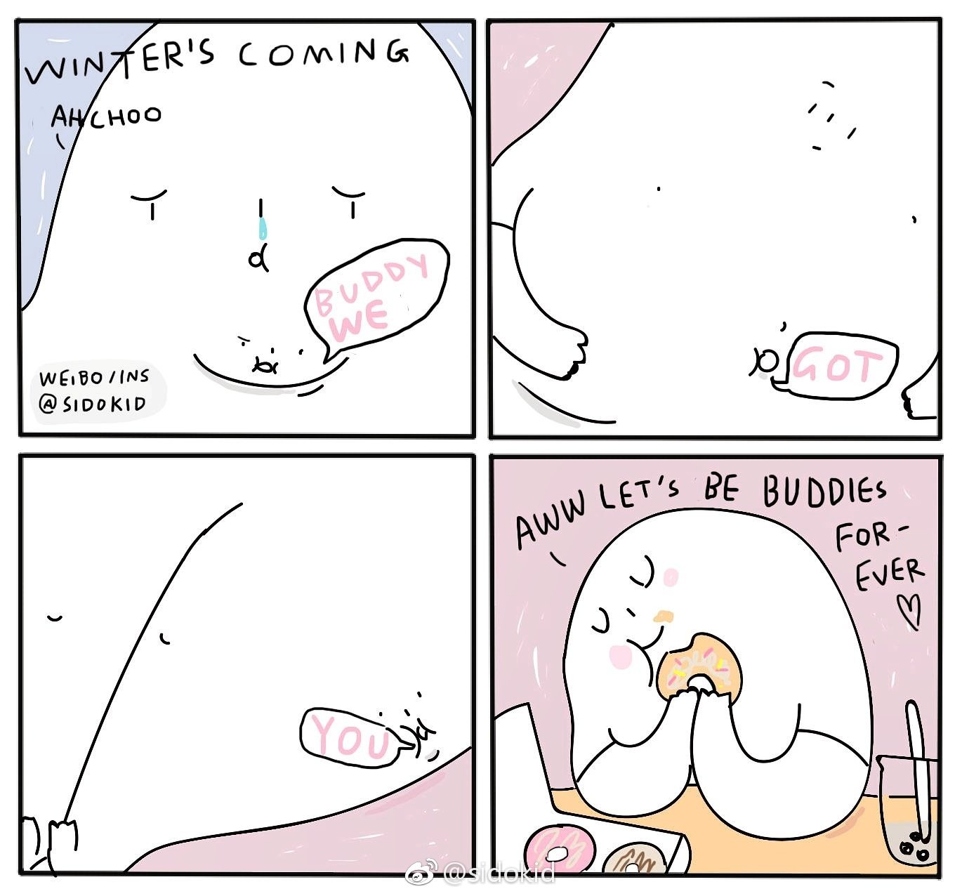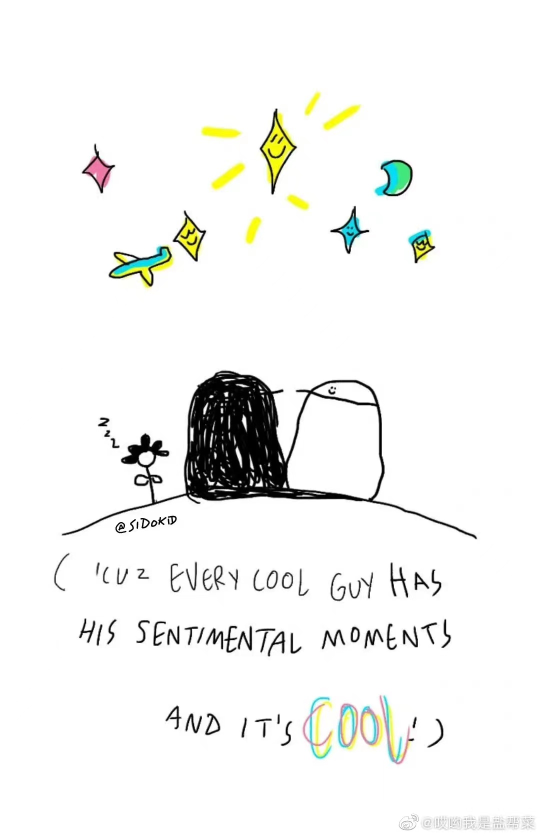 sidokid是我喜欢的一位插画画家之一,然而她在前两年把ins、微博、微信公众号都注销了。比较有名的插画有“But i like you”系列,由于“But i like you”系列在网上传播广泛,也易于找到,故不在下面收录。