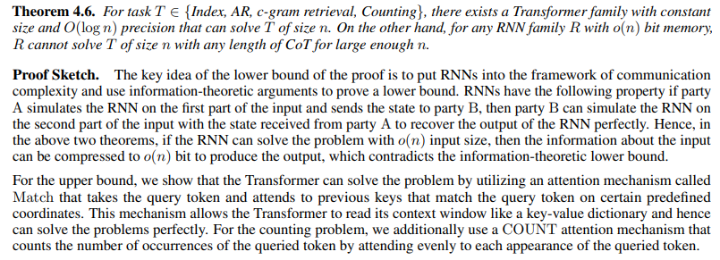 上述定理表明,存在一些任务,其中 Transformer 所需的内存比 RNN 少得多。