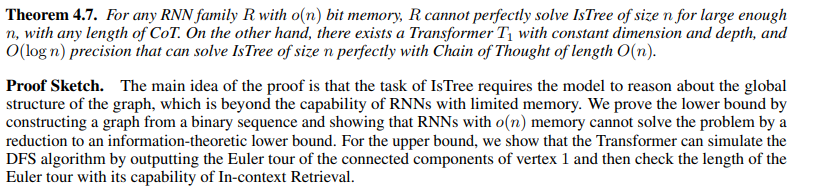 从消极的一面来看,我们表明采用 CoT 不足以缩小 RNN 和Transformer 之间的表示差距:RNN 的内存效率从根本上限制了它们执行上下文检索的能力,即使使用 CoT 也是如此。通过证明带有 CoT 的 RNN 无法解决一组直接要求上下文检索(包括联想召回)的基本算法问题,这一点得到了具体体现。通过证明 RNN 无法解决确定图是否是树的经典问题,我们进一步举例说明了在看似不相关的任务中隐含地需要上下文检索。