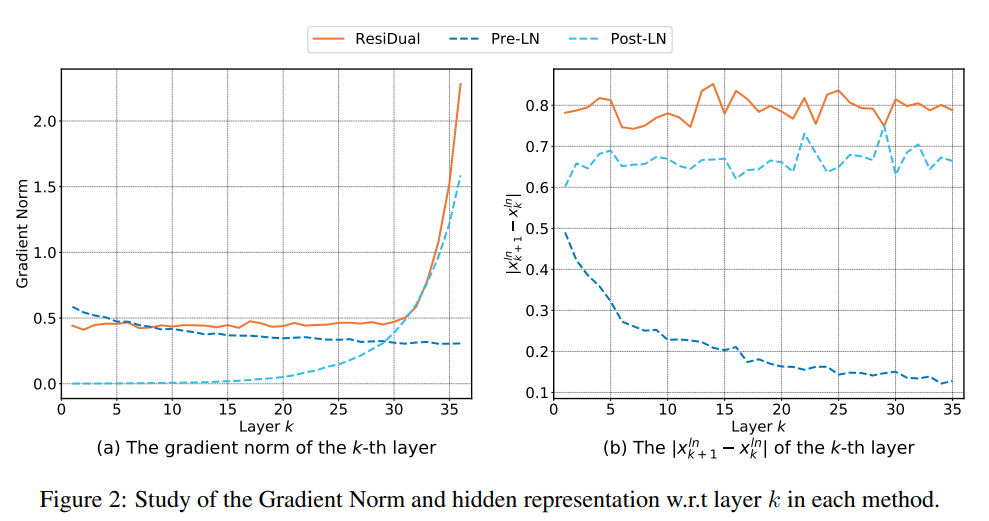 ResiDual吸收两者之长,避两者之短,没有了Post-LN的Gradient Vanish,也没有了Pre-LN的Representation Collapse。