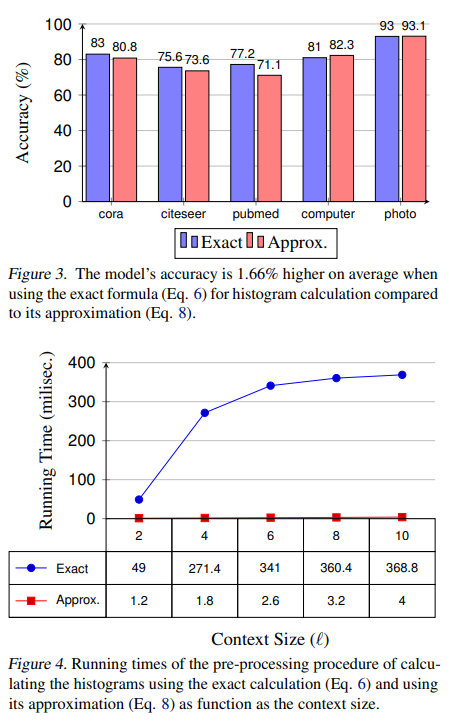对于较大的数据集,例如 ogbn-products,这种计算变得很麻烦。为了解决这个问题,提出了 h 的有效近似。通过使用卷积运算扩展标签来联合计算图中所有节点的直方图。具体来说,矩阵 H 的行表示每个节点的非标准化直方图,通过以下方式获得: