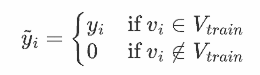 h_i’ = \sum_{v_j \in N^\ell(v_i) \cap V_{train}} (\alpha^{d(v_i, v_j)} \cdot y_j)