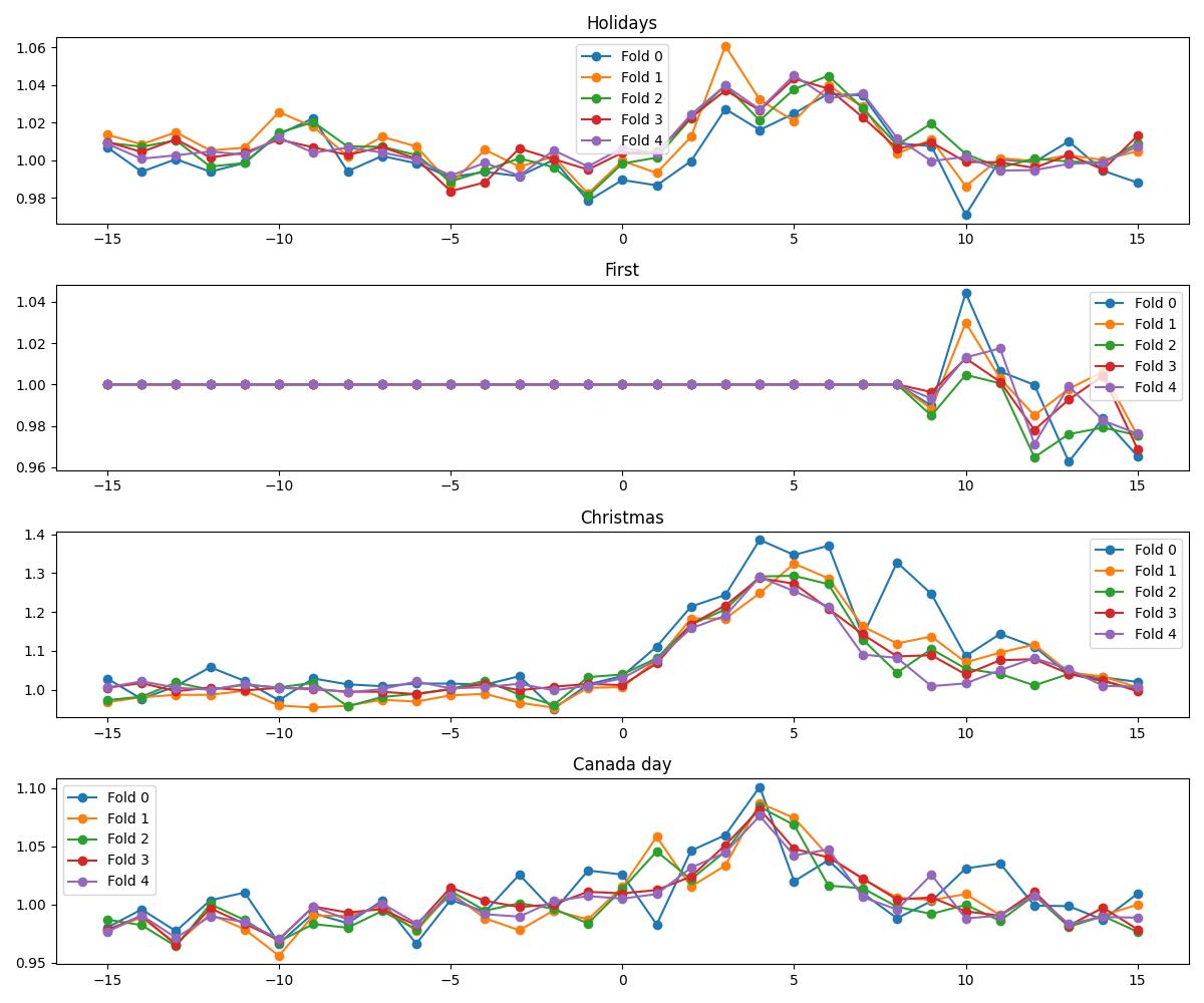 - 使用高斯曲线拟合的权重来创建节假日特征(代替原来的10个0/1指示变量)