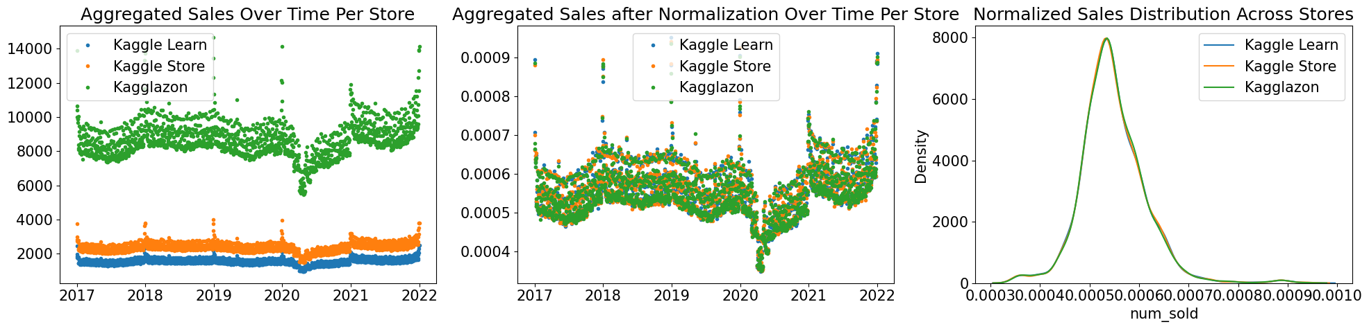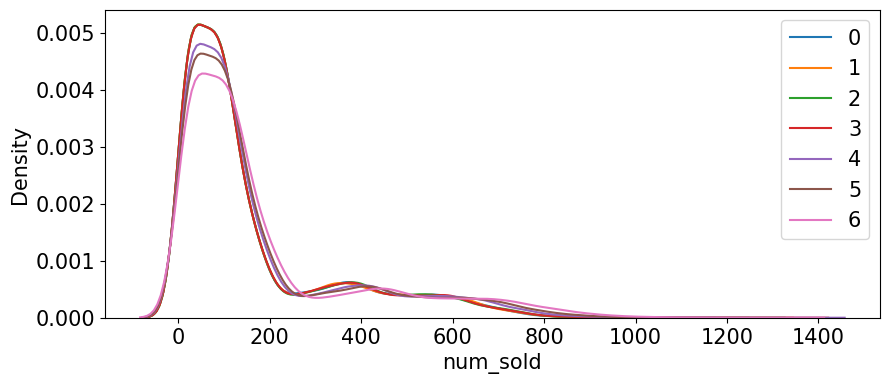 在检查商店后,发现每个商店都显示相似的销售额分布,仅差一个标量常数。