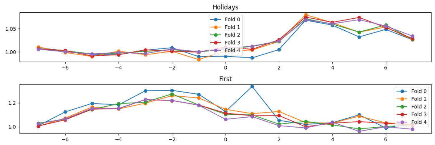 其中“圣诞节和元旦的节假日效应可能会出现覆盖或影响的情况”这个性质,在前6名中,只被第一名所使用。也许这就是在高分者算法大致类似的情况下,第一名没有更多复杂的操作但能优于其他人的原因之一。