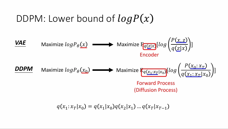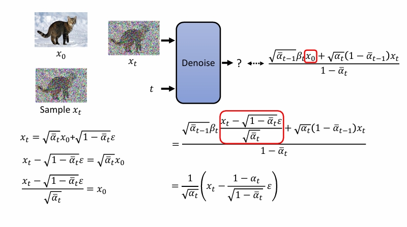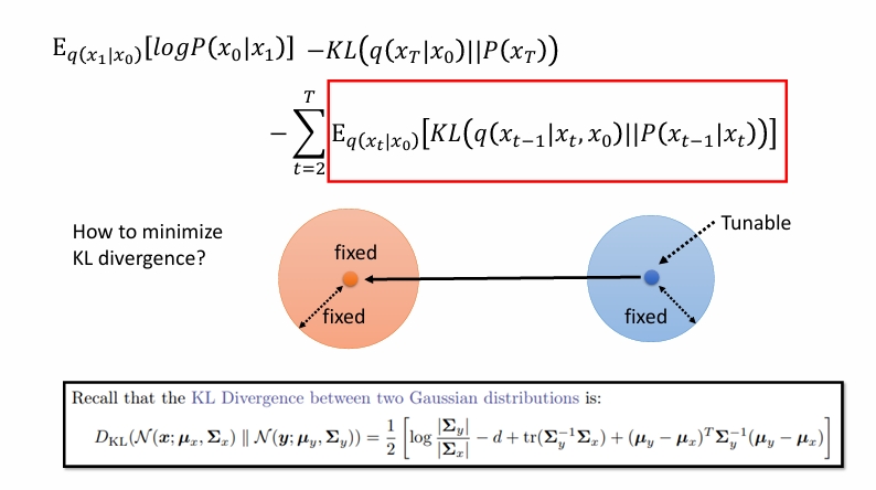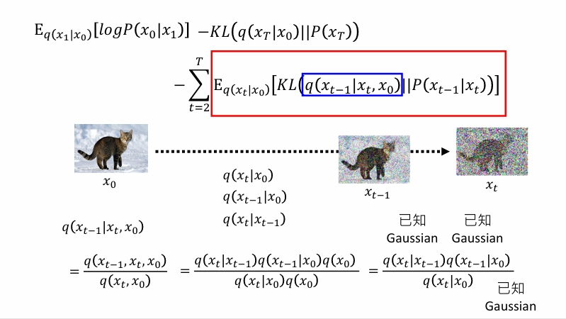 但是实际上方差我们假定是固定的,所以只需要均值越靠近越好。也就是相当于使用去噪神经网络直接预测左下角那一坨。