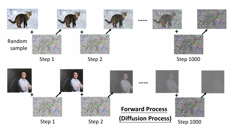 Diffusion模型本质上是加噪和去噪的过程,通过加噪将一张图片转为纯噪声,通过去噪将一张噪声转为有价值的图片。