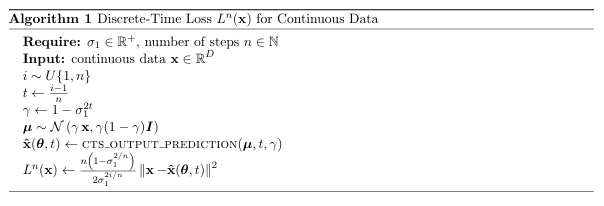 伪代码如下,可以发现其实前面还有个n,这是为什么呢?作者是从整体定义损失函数的,也就是n步,但是我们实际上(或者DDPM实际上)只对一步进行拟合,那么我们要获得完整的损失函数,我们需要乘上一个n去近似它。