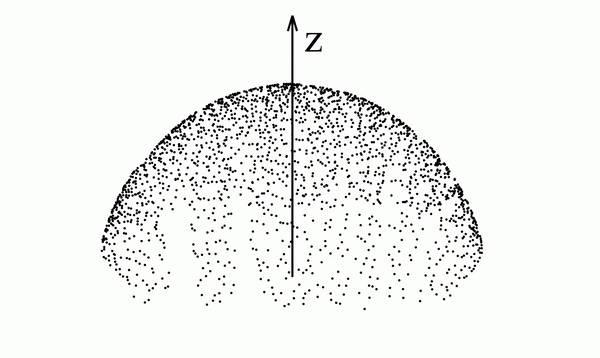 在半球上均匀采样并使用得到的 z 分量作为常微分方程的起始点,这很容易。但是存在一个小问题。许多常微分方程求解器要求整个批次具有相同的初始值。位于半球上的点具有许多不同的 z 值,这带来了一些小障碍。