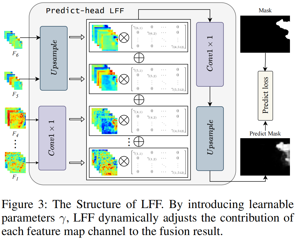 class Multiple(nn.Module): def __init__(self, init_value = 1e-6, embed_dim = 256, predict_channels = 1, norm_layer = partial(nn.LayerNorm, eps=1e-6) ): super(Multiple, self).__init__() self.gamma1 = nn.Parameter(init_value * torch.ones((embed_dim)),requires_grad=True) self.gamma2 = nn.Parameter(init_value * torch.ones((embed_dim)),requires_grad=True) self.gamma3 = nn.Parameter(init_value * torch.ones((embed_dim)),requires_grad=True) self.gamma4 = nn.Parameter(init_value * torch.ones((embed_dim)),requires_grad=True) self.gamma5 = nn.Parameter(init_value * torch.ones((embed_dim)),requires_grad=True) self.gamma6 = nn.Parameter(init_value * torch.ones((embed_dim)),requires_grad=True) self.norm = norm_layer(embed_dim) self.conv_layer1 = nn.Conv2d(in_channels=320, out_channels=512, kernel_size=1, stride=1, padding=0) self.conv_layer2 = nn.Conv2d(in_channels=320, out_channels=512, kernel_size=1, stride=1, padding=0) self.conv_layer3 = nn.Conv2d(in_channels=320, out_channels=512, kernel_size=1, stride=1, padding=0) self.conv_layer4 = nn.Conv2d(in_channels=320, out_channels=512, kernel_size=1, stride=1, padding=0) self.conv_last = nn.Conv2d(embed_dim, predict_channels, kernel_size= 1) def forward(self, x): c1, c2, c3, c4, c5, c6 = x c1 = self.conv_layer1(c1) c2 = self.conv_layer2(c2) c3 = self.conv_layer3(c3) c4 = self.conv_layer4(c4) b, c , h, w = c1.shape c5 = F.interpolate(c5, size=(h, w), mode='bilinear', align_corners=False) c6 = F.interpolate(c6, size=(h, w), mode='bilinear', align_corners=False) c1 = c1.flatten(2).transpose(1, 2) c2 = c2.flatten(2).transpose(1, 2) c3 = c3.flatten(2).transpose(1, 2) c4 = c4.flatten(2).transpose(1, 2) c5 = c5.flatten(2).transpose(1, 2) c6 = c6.flatten(2).transpose(1, 2) x = self.gamma1*c1 + self.gamma2*c2 + self.gamma3*c3 + self.gamma4*c4 + self.gamma5*c5 + self.gamma6*c6 x= x.transpose(1, 2).reshape(b, c, h, w) x = (self.norm(x.permute(0, 2, 3, 1))).permute(0, 3, 1, 2).contiguous() x = self.conv_last(x) return x