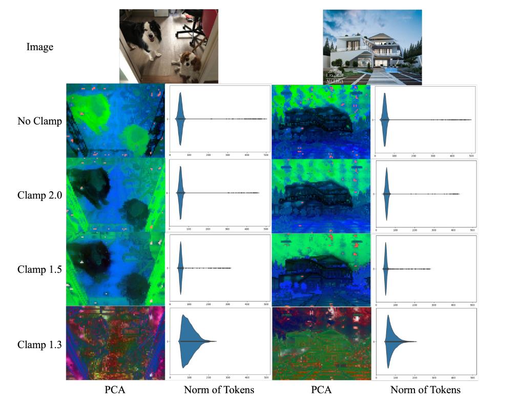 为了验证这一点,作者计算了每张图像的平均缺陷 token,然后计算它们之间的平均成对角度,结果为 5.5 度。这证实了最后一层中的缺陷方向本质上与输入图像无关。这一观察结果与前人中的观点不同,前人声称高范数token 包含图像级别的全局信息。(有点类似attention sinks)
