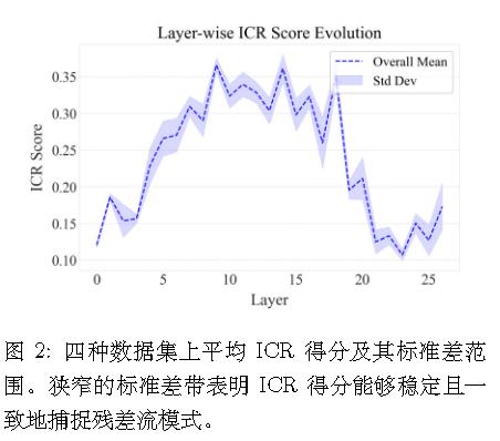 为了克服这些局限性,本文将关注点从隐状态本身转移到其在各层间的更新过程。引入一种新指标——ICR 得分(Information Contribution to Residual Stream),用于量化模块对隐状态更新的贡献。