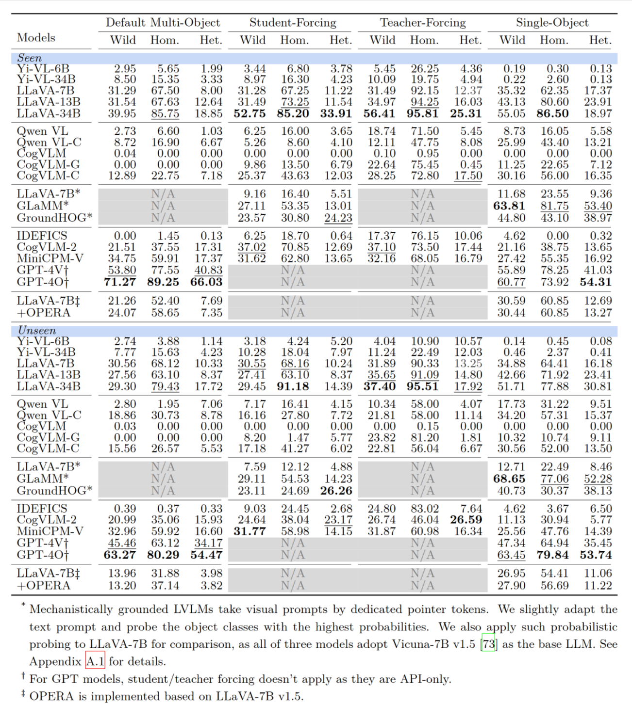 被测物体的类别分布会影响幻觉行为: 模型在处理同质物体(都是同一类)时表现最好,而在处理异质物体(每个都不同类)时表现最差,幻觉最多 。这表明模型可能依赖于某种“捷径”或虚假的关联性来做出判断,而不是真正地逐一识别每个物体 。