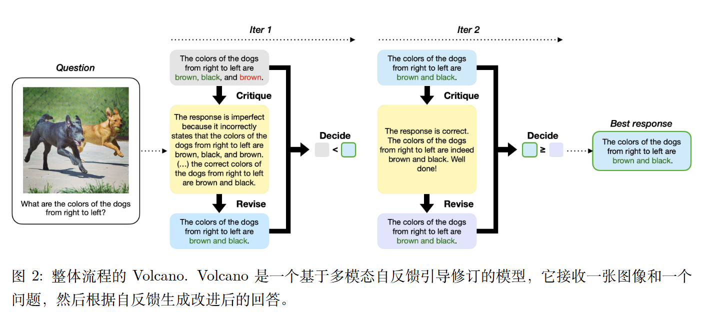 Volcano 是一个通过四阶段顺序过程生成改进响应的单一模型。