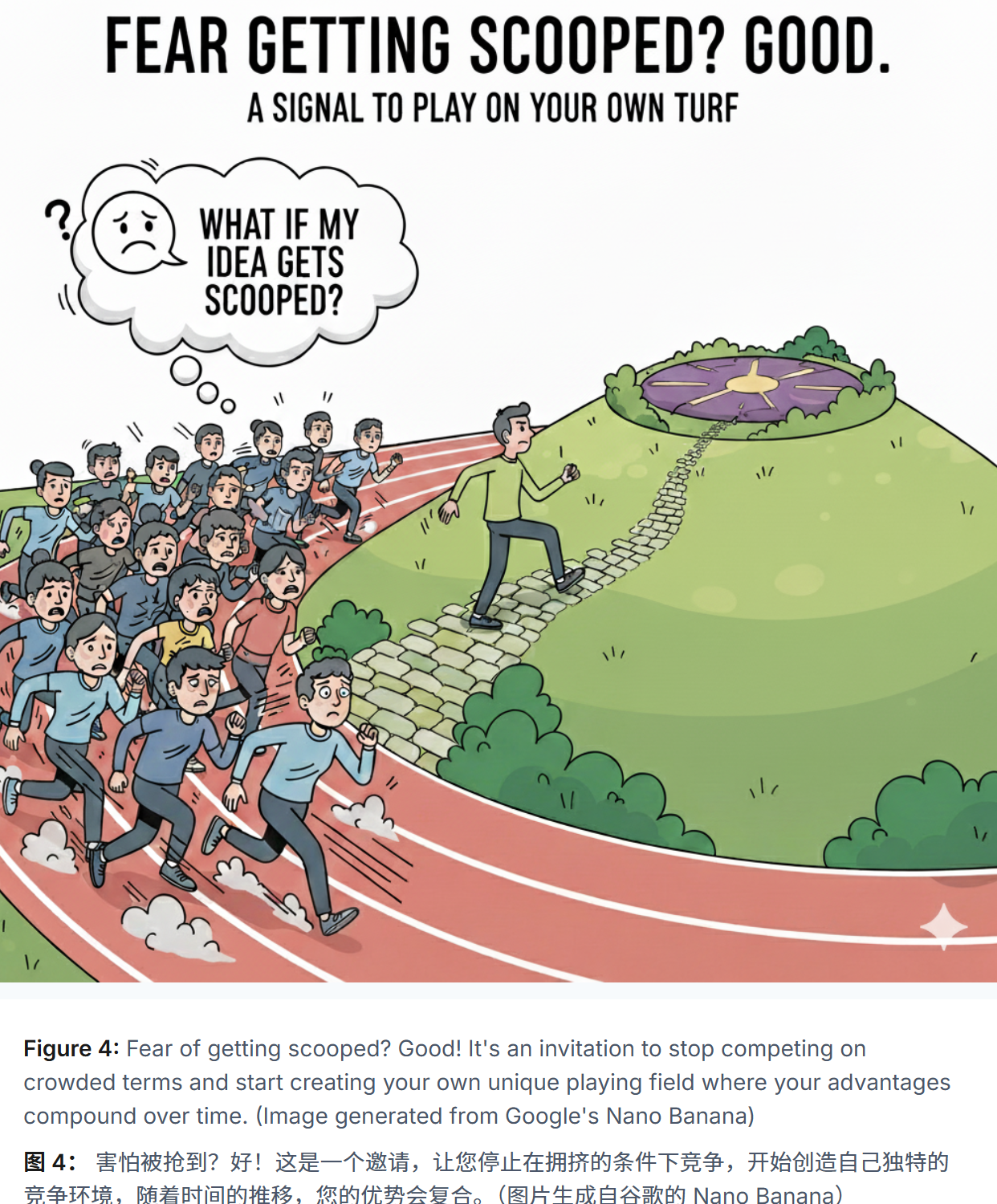如果一个想法感觉很容易被挖出来,那是因为你身处一个拥挤的领域,每个人都在玩同一个游戏。这个信号告诉你做出选择:要么成为正面交锋中最快的执行者,要么彻底改变游戏规则。