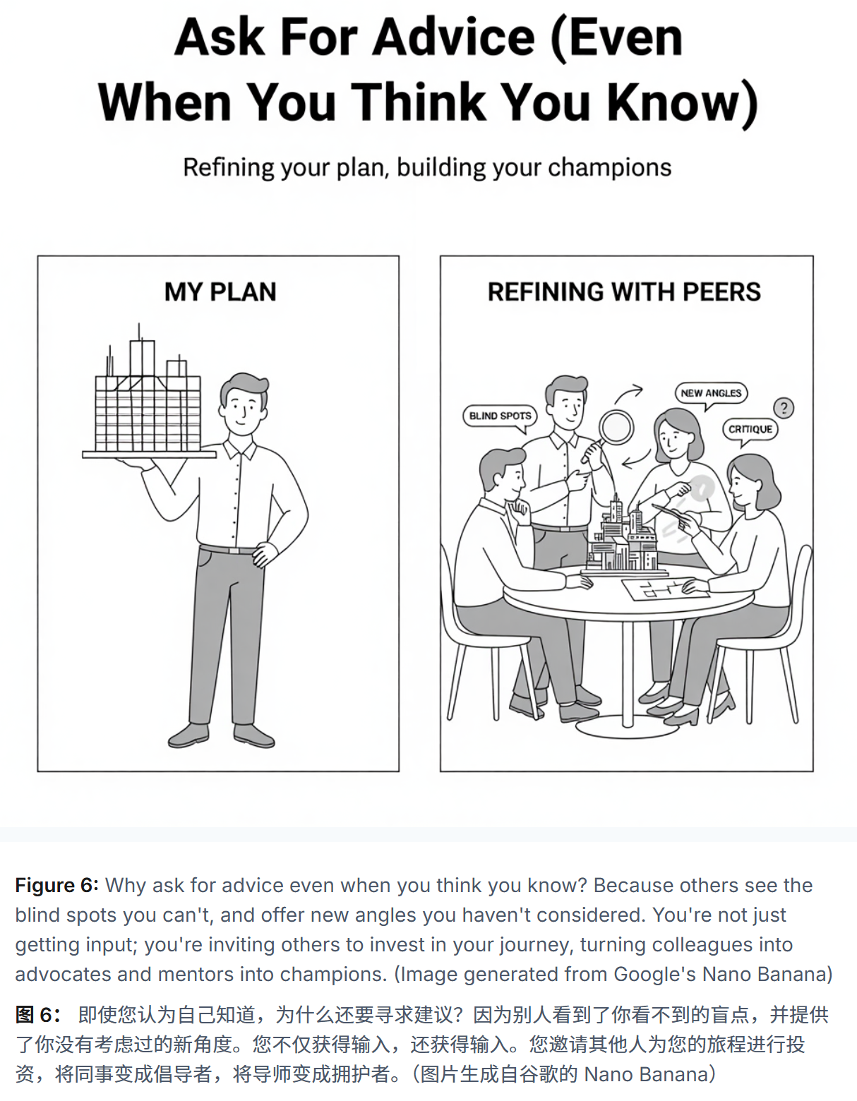 通常,您会得到一个新的角度或重要的健全性检查,以加强您的工作。但真正的好处是关系性的。当您寻求建议时,您不仅仅是在获取信息,而是在获取信息。你正在邀请某人成为你旅程的一部分。人们开始投资于他们帮助指导的人的成功。