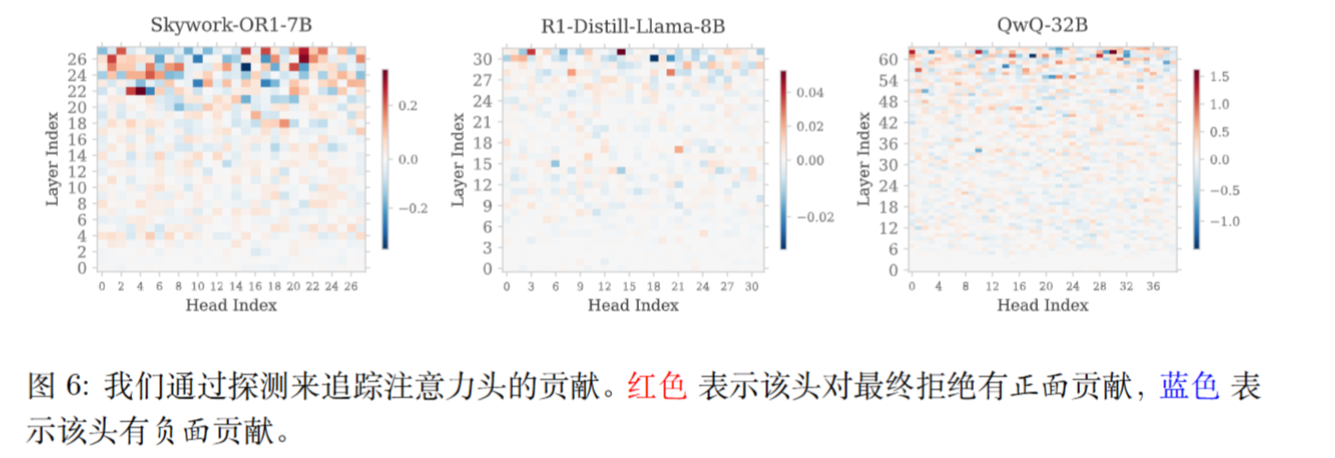 - 原因定位: 通过因果干预分析,论文将这种抑制现象归因于模型中一小部分稀疏的“拒绝抑制头 ”(Refusal Suppression Heads)。