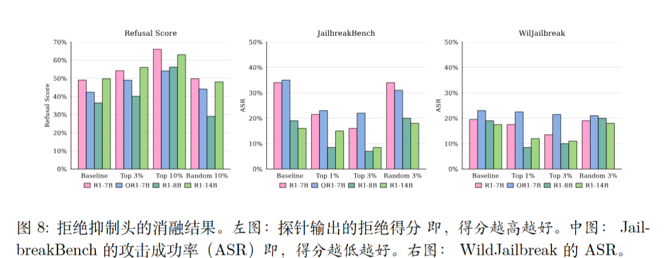 - 修复验证: 实验证明,仅需禁用 3% 的这类注意力头,就能将模型的攻击成功率(Attack Success Rate, ASR)降低到10%以下 。