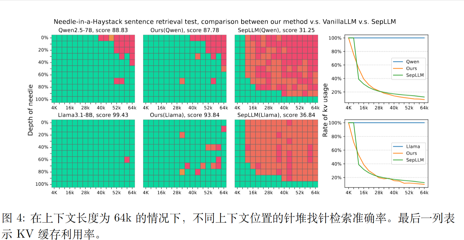 - 当触发”块选择”时,每一层的QK Adapter会计算出当前token对所有历史”块”的注意力分数,并选出各自的Top-k个关键块 。