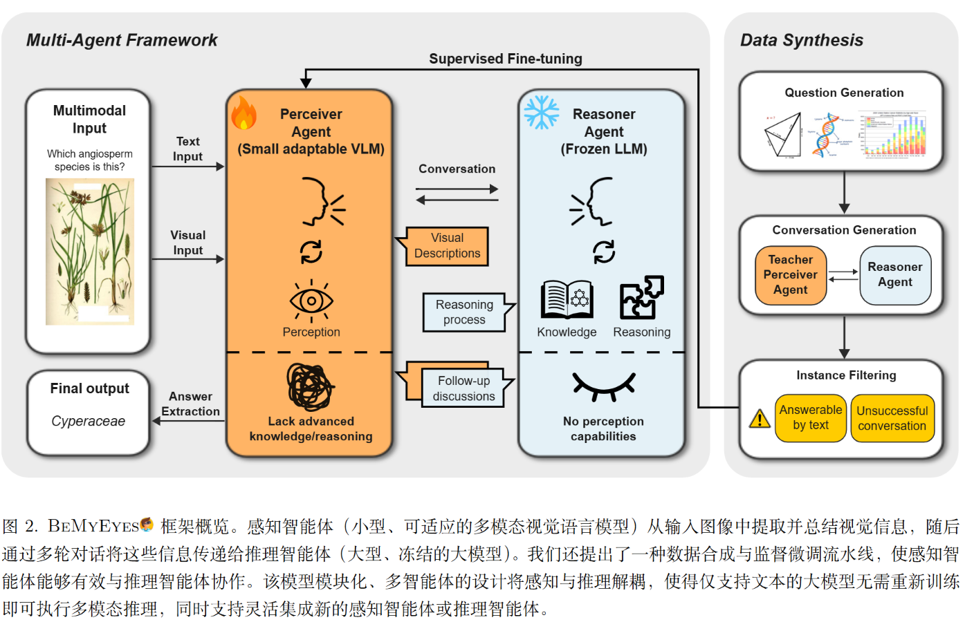 - 输出: 最终由感知者基于双方的讨论总结出答案 。