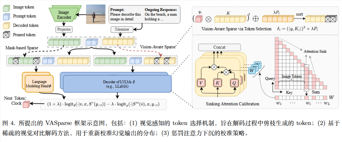 机制: 解码时根据 $\delta_i$ 排序,保留 Top-S 个 Token,从而强制保留关键的视觉信息。