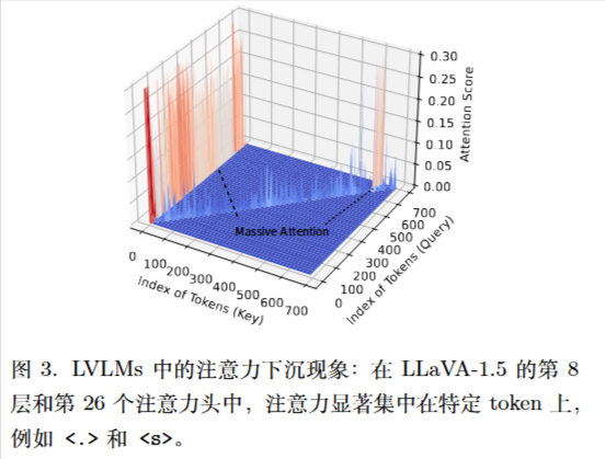 LVLMs 存在一种偏见,即大量的注意力会被分配给语义信息极低的文本 Token(如句号 . 或起始符 <s>),而忽略了图像 Token。这种“注意力下沉”导致模型过度依赖语言先验。