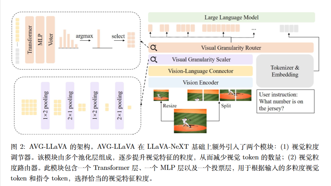 - 决策: 选择概率最高的那个粒度对应的视觉 Token 输入到 LLM 中进行后续推理 。