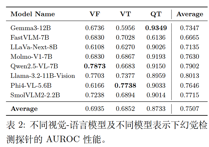 视觉特征 (VF, Visual Features):在多模态投影层 $\mathcal{M}$ 之前,视觉编码器输出的全局平均池化向量:$\overline{u}=\frac{1}{M}\sum_{i=1}^{M}u_{i}$ 。这代表了未与文本融合的纯视觉感知信息 。
